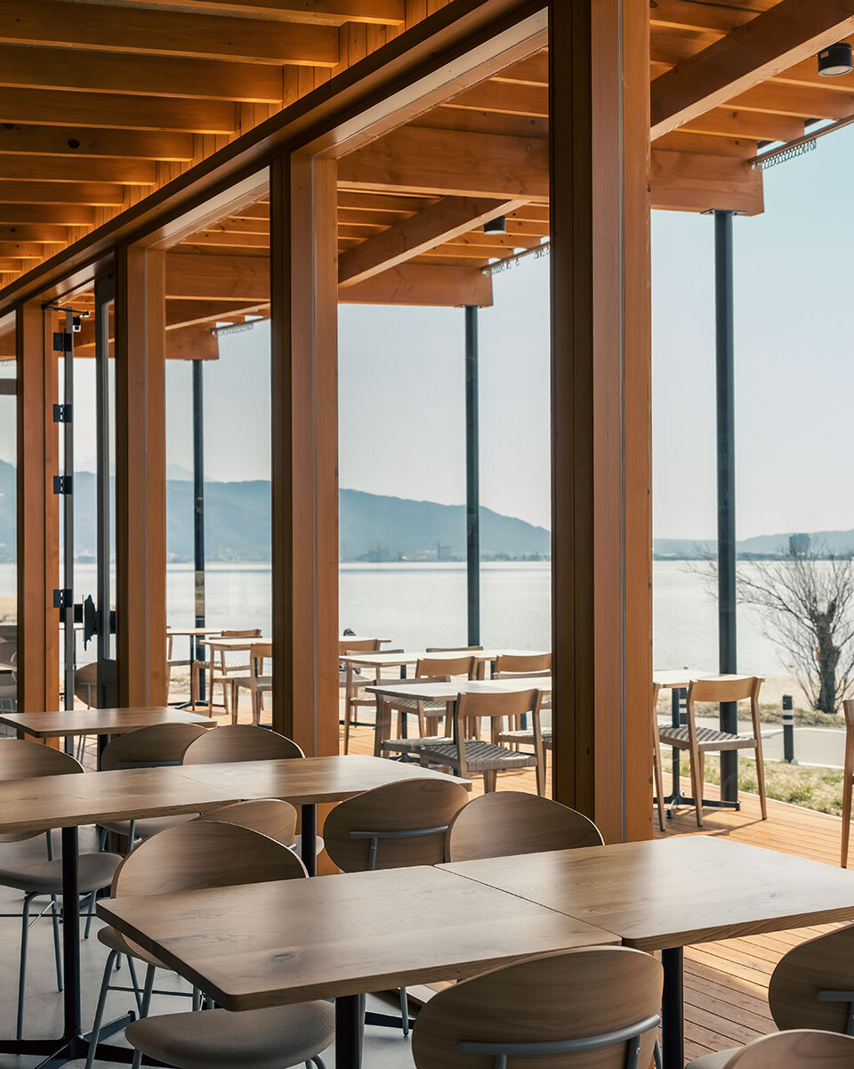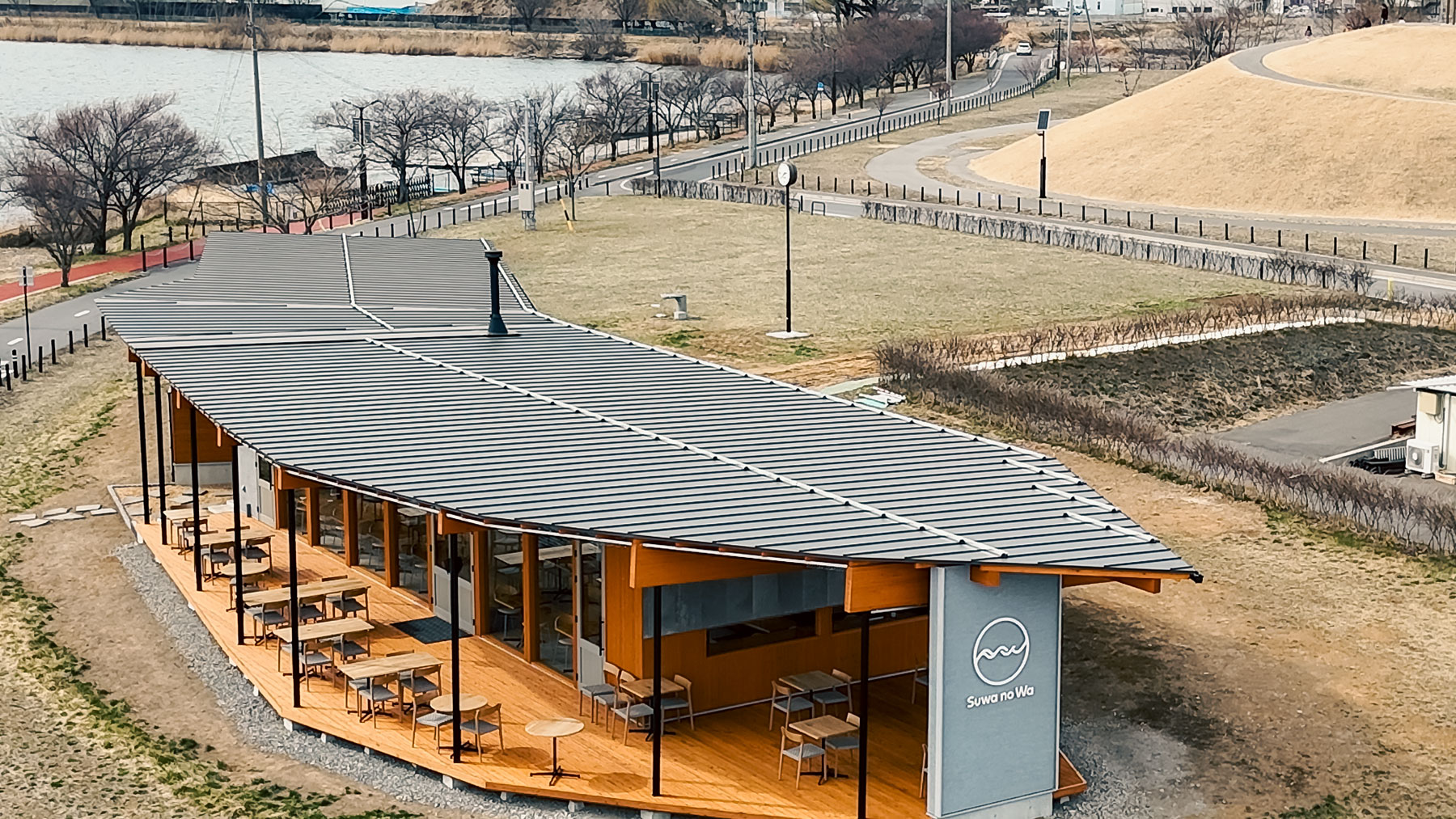 週末は9時からカフェ営業を行っており、朝の諏訪湖を眺めながらブランチや喫茶をお楽しみいただけます。