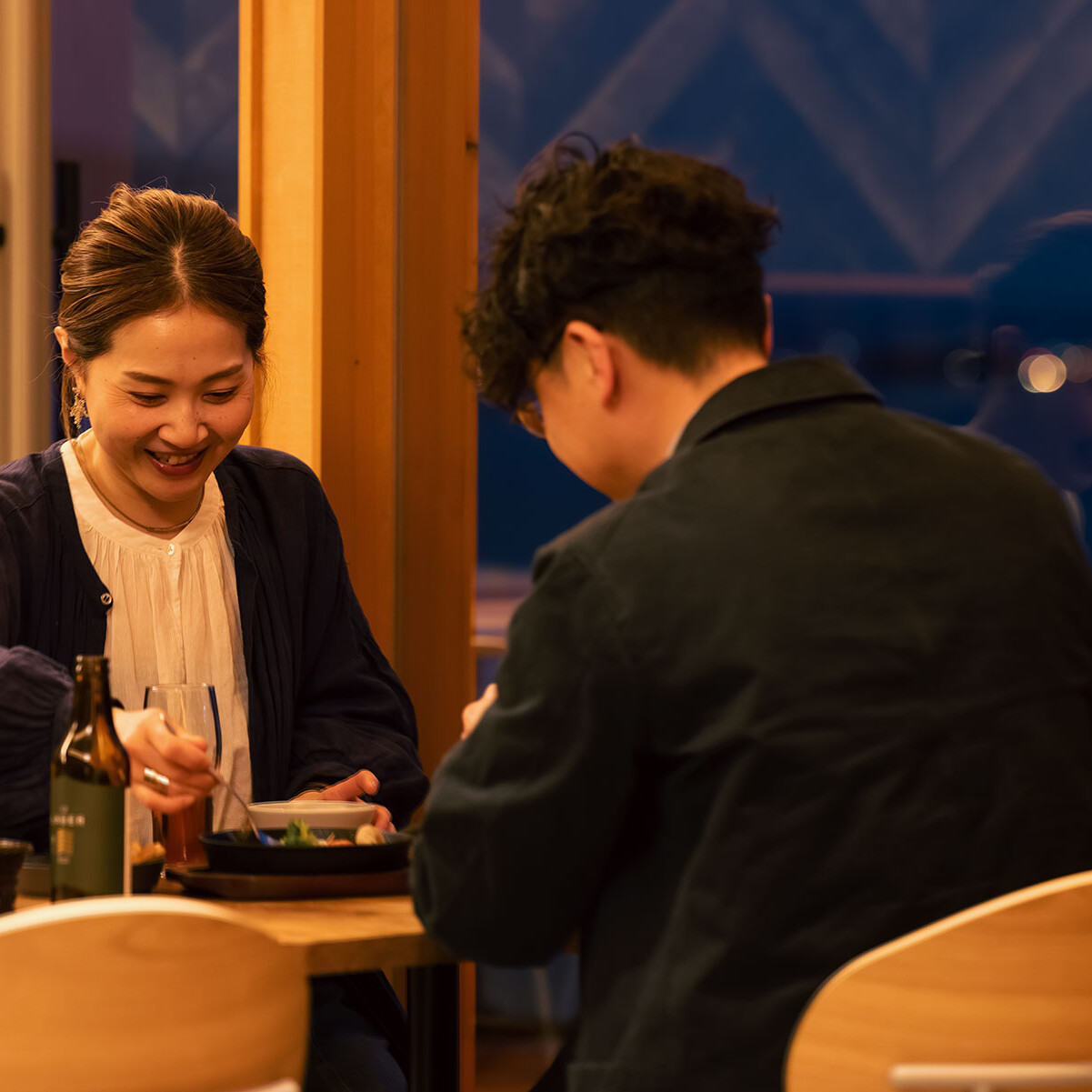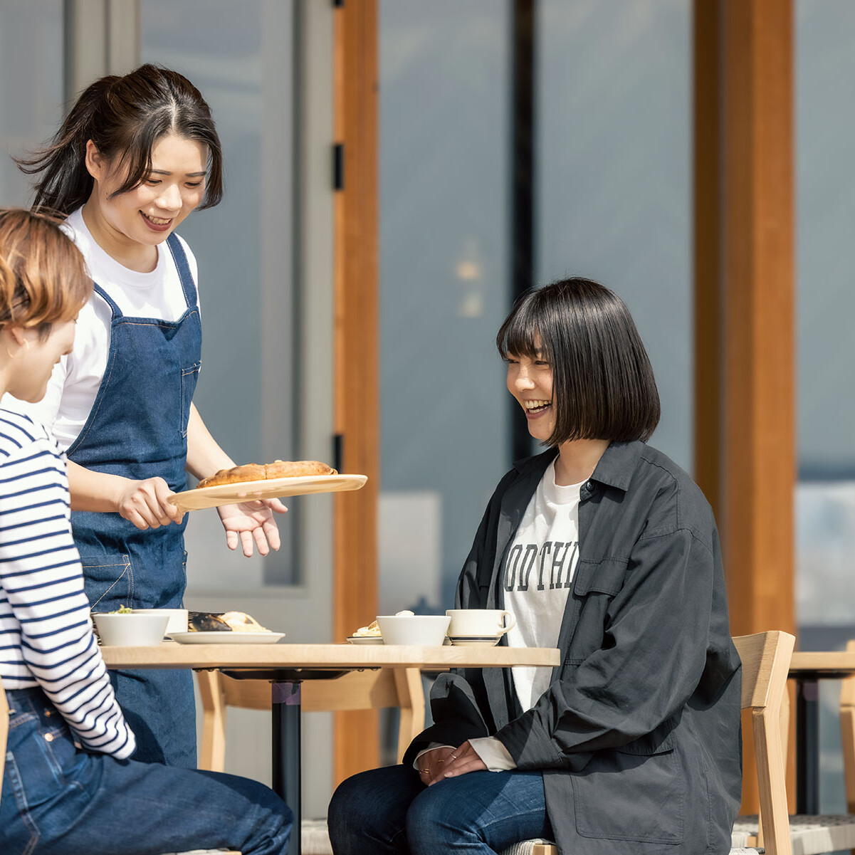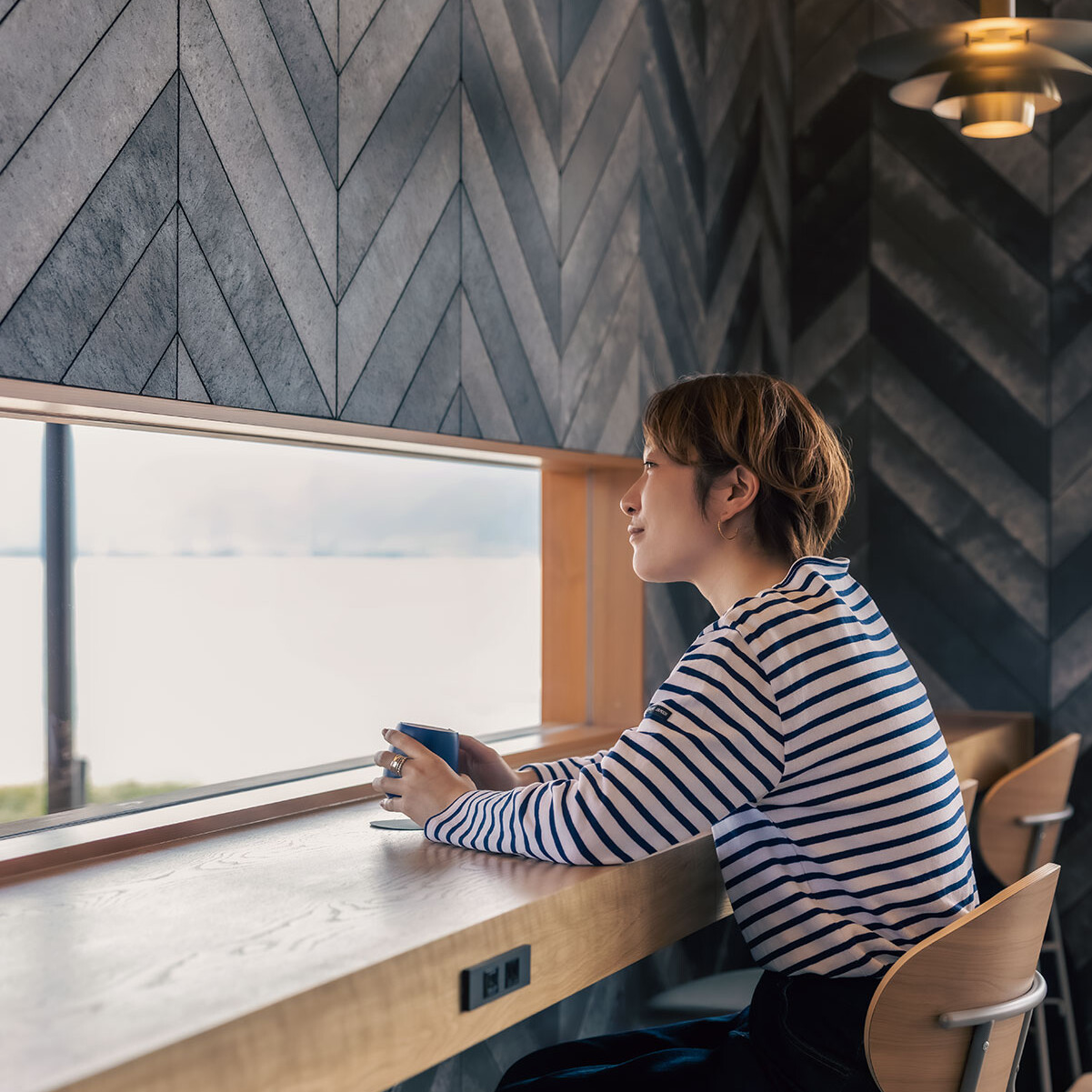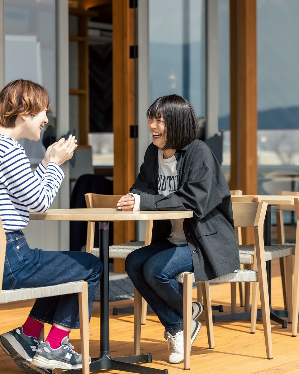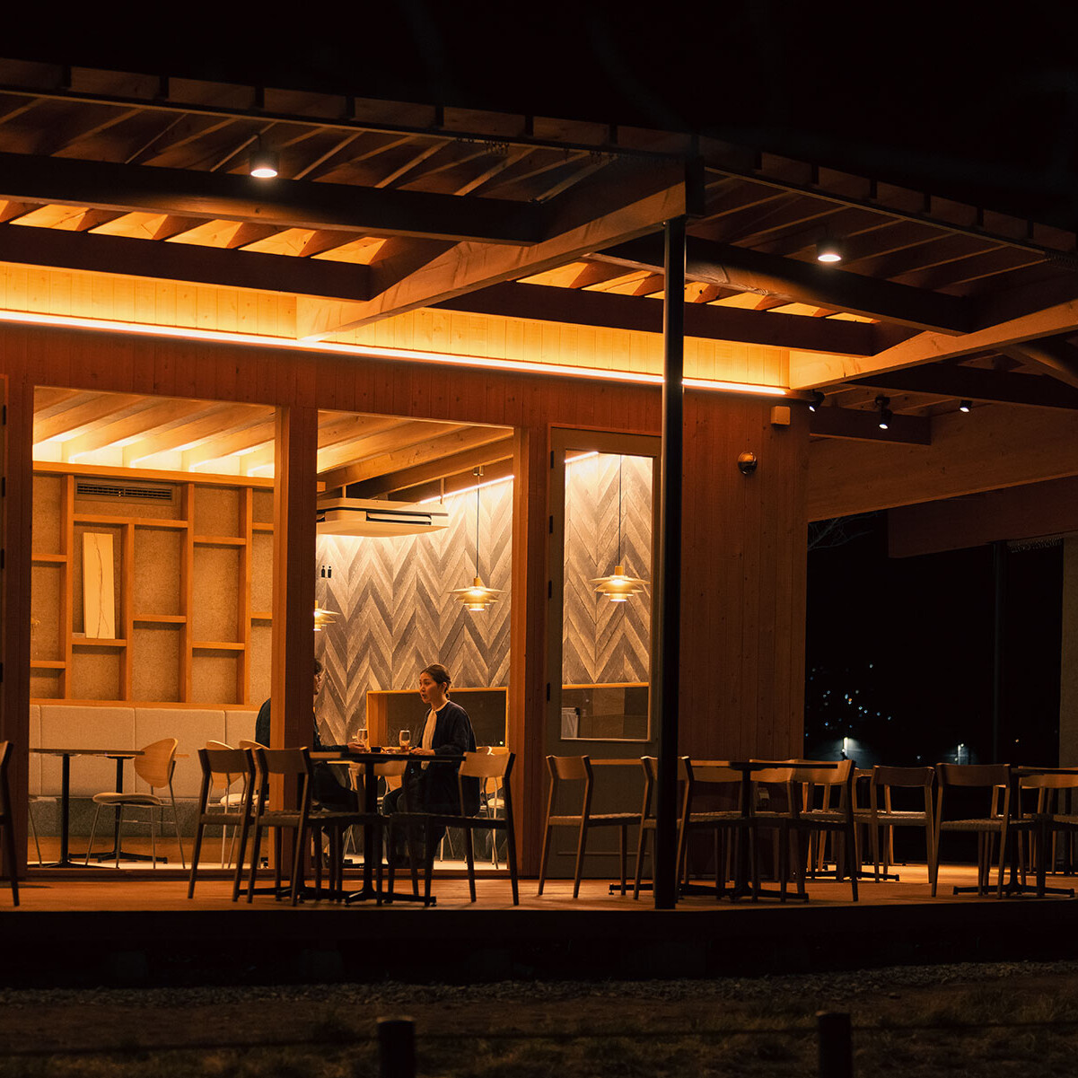 眼前に広がる諏訪湖を眺めながら、思い思いの時間を過ごせるカフェレストラン。カフェ、ランチ、ディナーなど、利用シーンに合わせたメニューをご用意し、さまざまなひとときを心地よく彩ります。