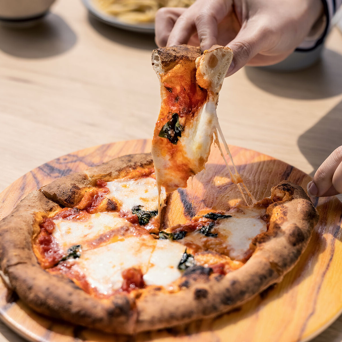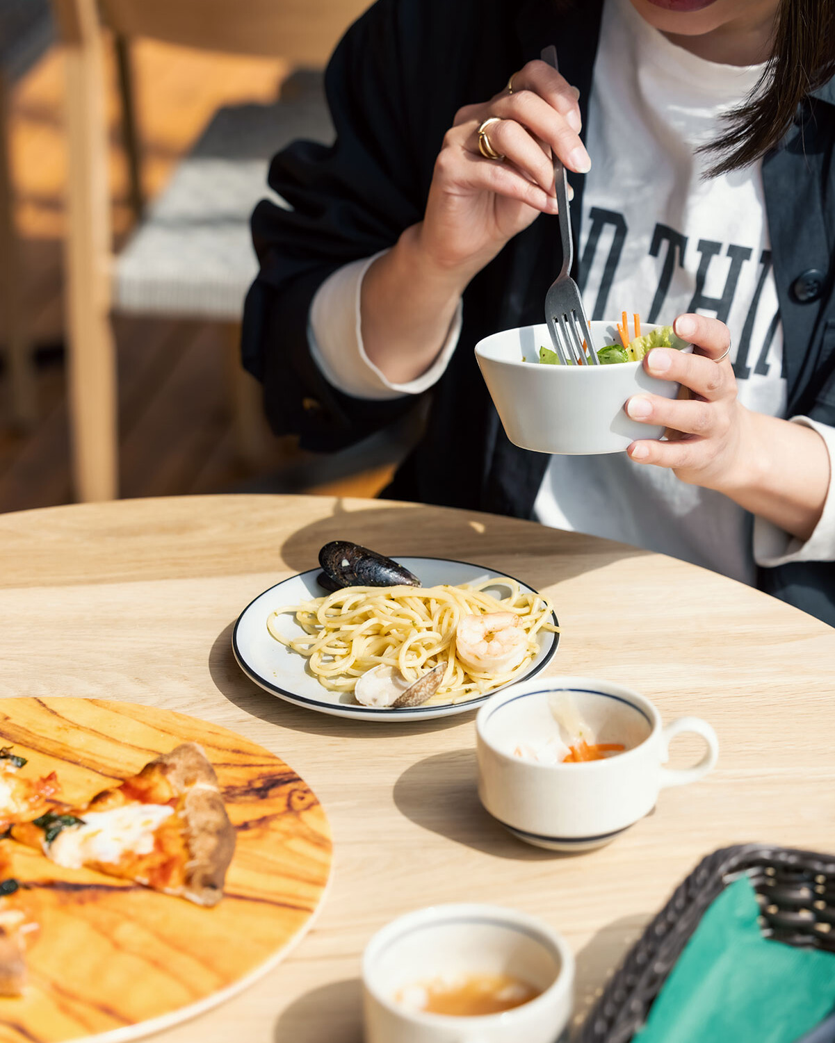 ピザやパスタをはじめ、幅広いメニューをご用意しています。湖畔の景色とともに、ゆったりとした昼のひとときをお過ごしください。