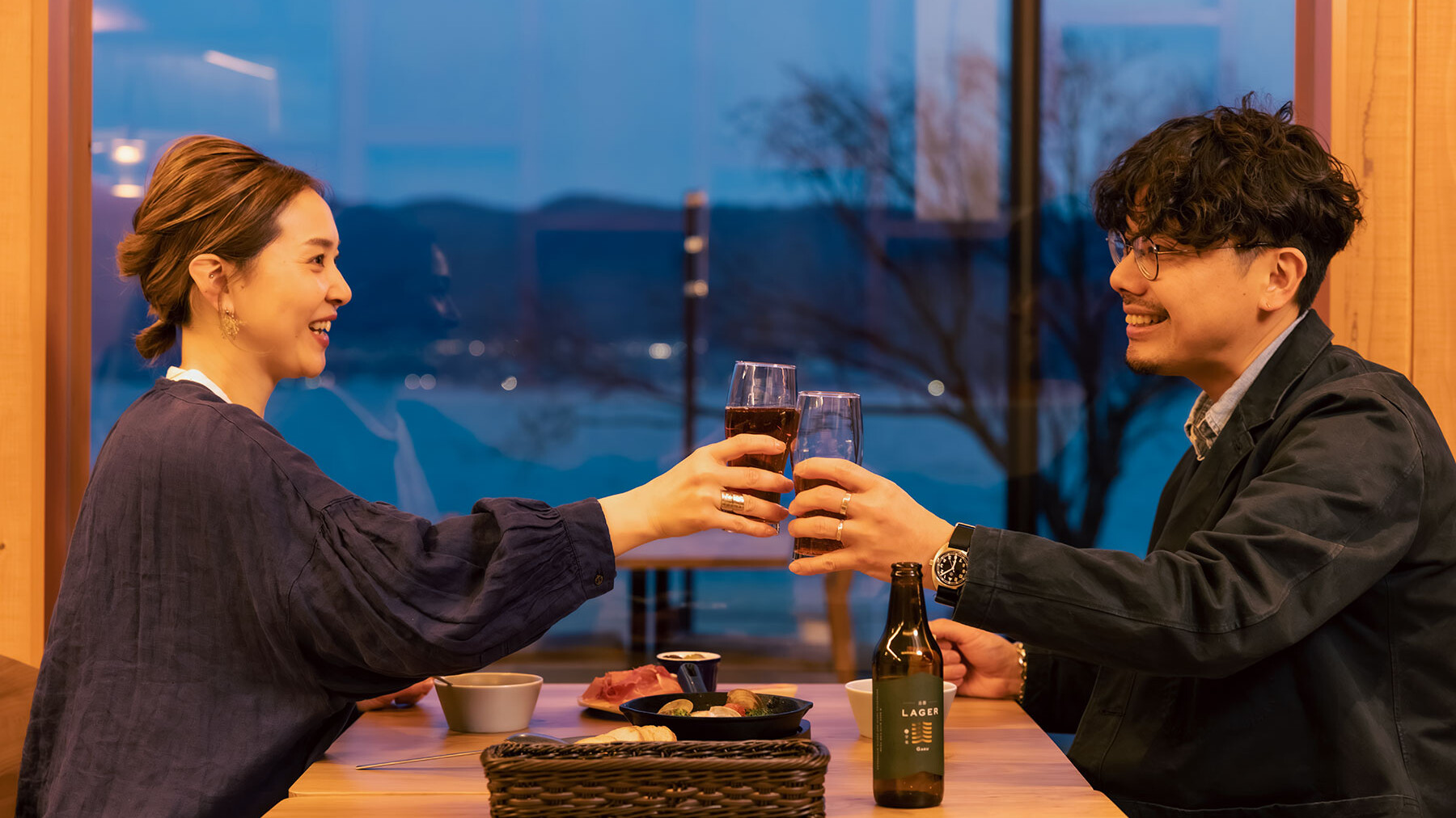 諏訪湖の風と光を全身で感じる、開放的なアウトドアフィールド。賑やかに食を囲むBBQ、静寂に包まれるキャンプ。思い思いのスタイルで自然と一体になり、心身を開放する特別な時間をお過ごしください。
